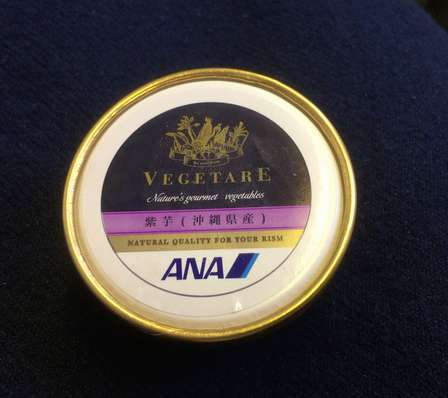 「硬いので少し時間を置いてお食べください」というCAさんの言葉がありながら、我慢できなくて硬いアイスをつつく私…アホです。